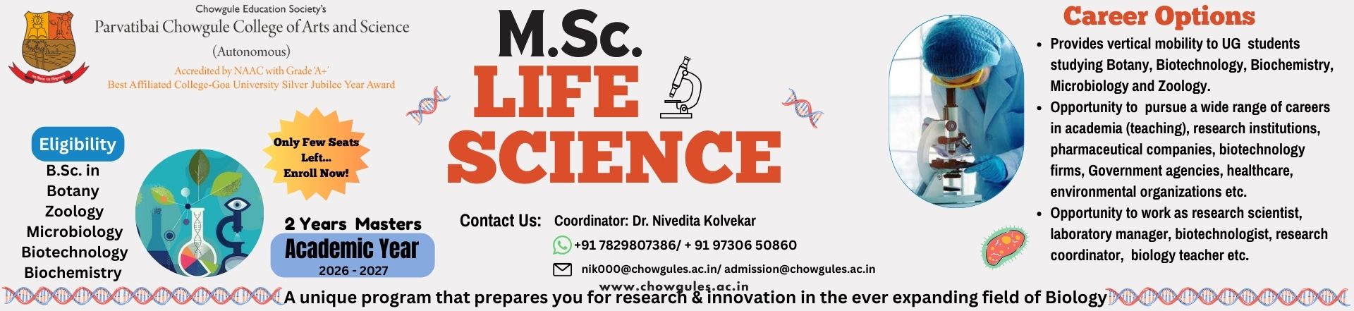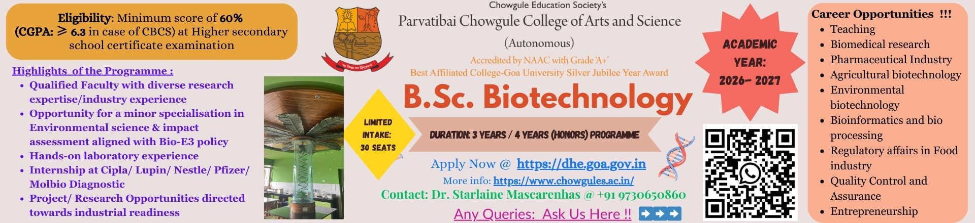 Parvatibai Chowgule College of Arts and Science is a premier educational institution in the State of Goa, offering courses at the Graduate, Postgraduate and PhD levels.