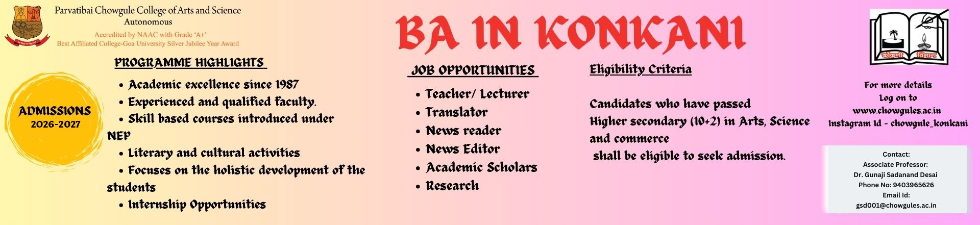 As graduates of CES’s Parvatibai Chowgule College of Arts and Science (Autonomous), our journey together is a lifelong connection rooted in shared experiences, cherished memories, and the collective pride of belonging to our alma mater.