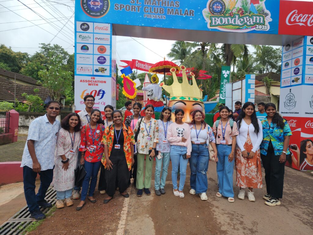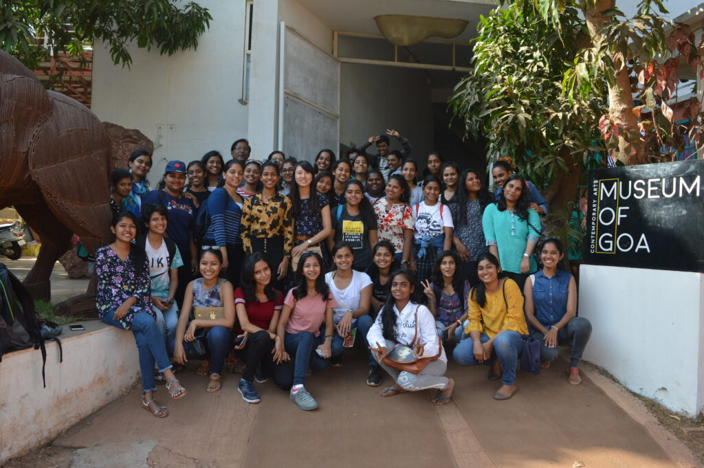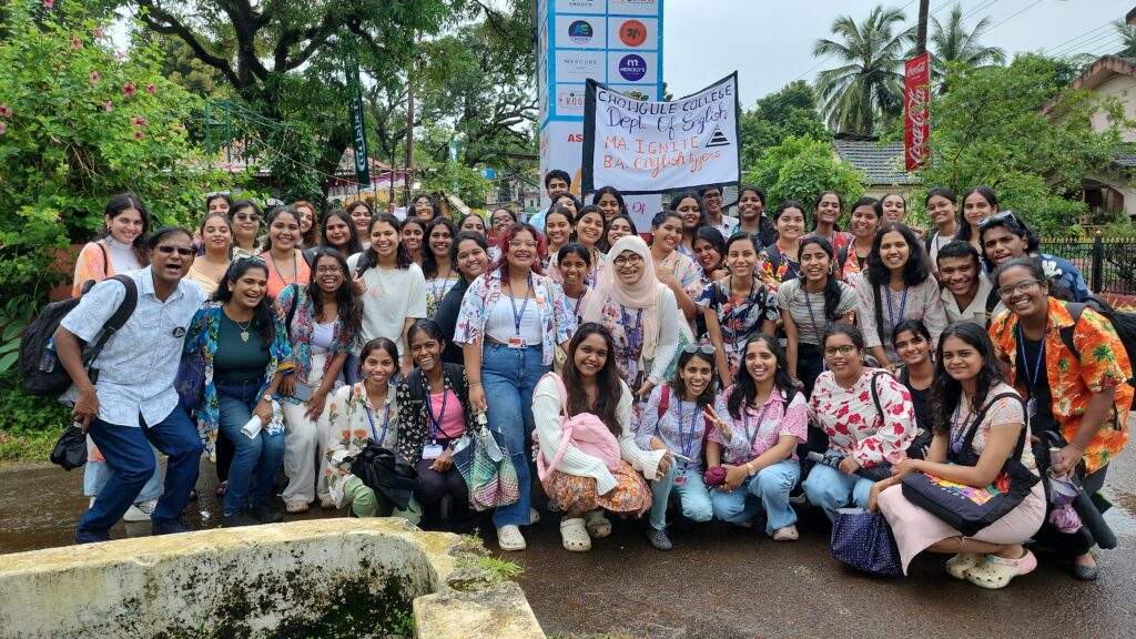The department annually organized fieldtrips, and study tours to Mumbai, Jaipur, and within Goa itself. These provide opportunities to the learners to test their in-class learning in real life situations as well as to understand the functional diversity in learning spaces. We have visited Jaipur Literary Festival, Kala Ghoda Arts and Literary Festival, Mumbai, Goa Arts and Literary Festival, Serendipity Festival, Goa, Museum of Goa, Mumbai ComicCon, etc.  During  the study tour to Mumbai for  Kala Ghoda , ComicCon, and field trip to the GALF festival, the students are encouraged to attend as many events as they can from a number of areas like Art, Literature, Theatre, Stand-up, Music and Film. This allows the students to be independent while on tour, developing people-skills and networking opportunities, broadening the students perception of arts and literature. During the fieldtrip the students are able to meet and interact with authors, poets, critics, publishers and curators from various fields from India and abroad.