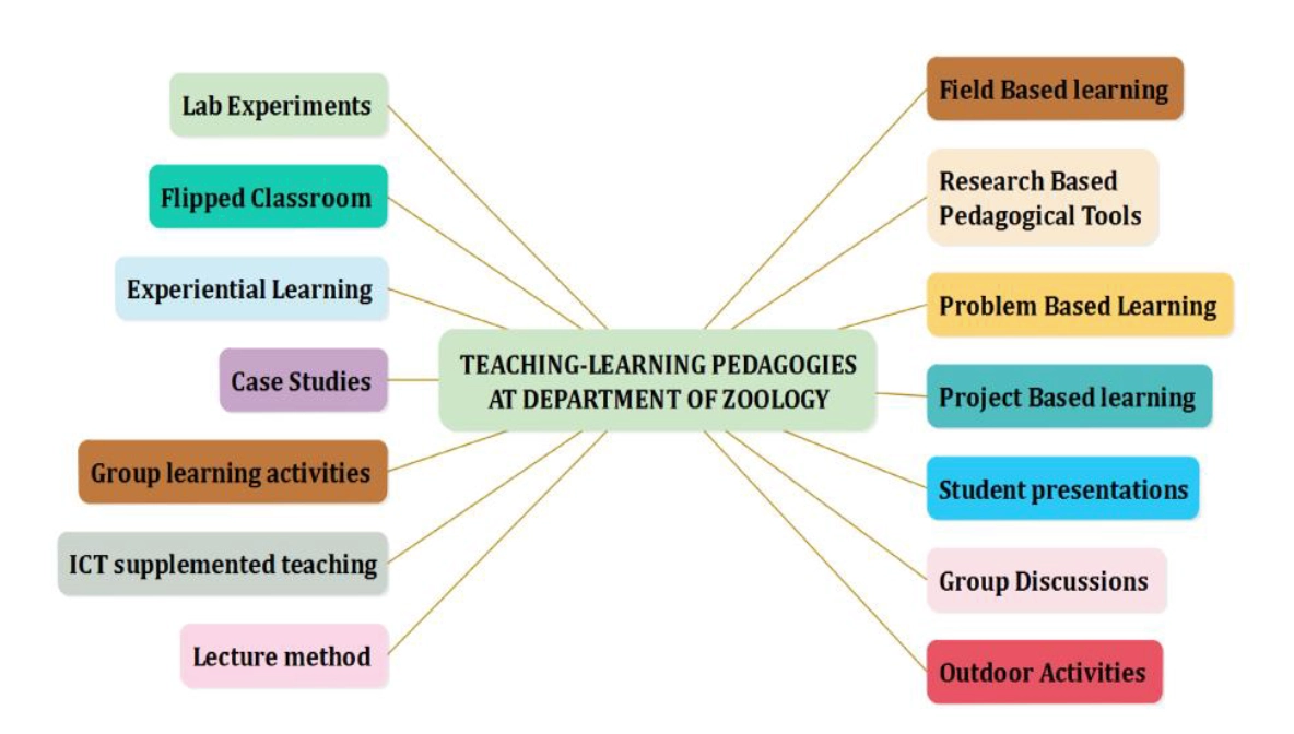 The curriculum is designed to build strong foundations in animal diversity, cell and molecular biology, genetics, physiology, biochemistry, microbiology, immunology, ecology, wildlife biology, fisheries, biotechnology, and conservation sciences, while also emphasizing environmental sustainability, public health, entrepreneurship, GIS, and data analysis. Value-added, skill enhancement, vocational, and multidisciplinary courses ensure students acquire practical skills, industry exposure, and employability-oriented competencies.